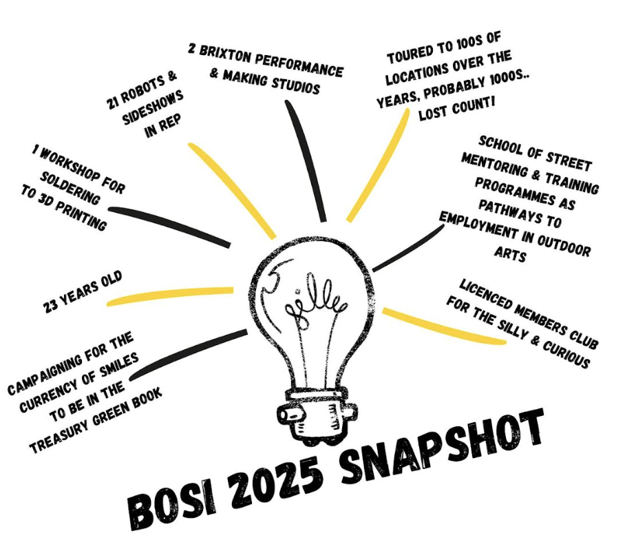 BOSI was formed to to explore the concept of engaging people with their public space and urban environment through the use of street theatre. Our creative territories have now moved beyond outdoor street theatre and we have built a reputation for working in all aspects of the public realm; museums and heritage sites, galleries, shopping centres, parks, theme parks, festivals, stations and airports. We are valued as experts in our field, regularly partaking in consultancy for high level public and private organisations. Based on our knowledge and ability to engage with audiences, we now receive opportunities to work with teams to develop creative ways of thinking and indeed, unique pathways to the arts, heritage and culture.
